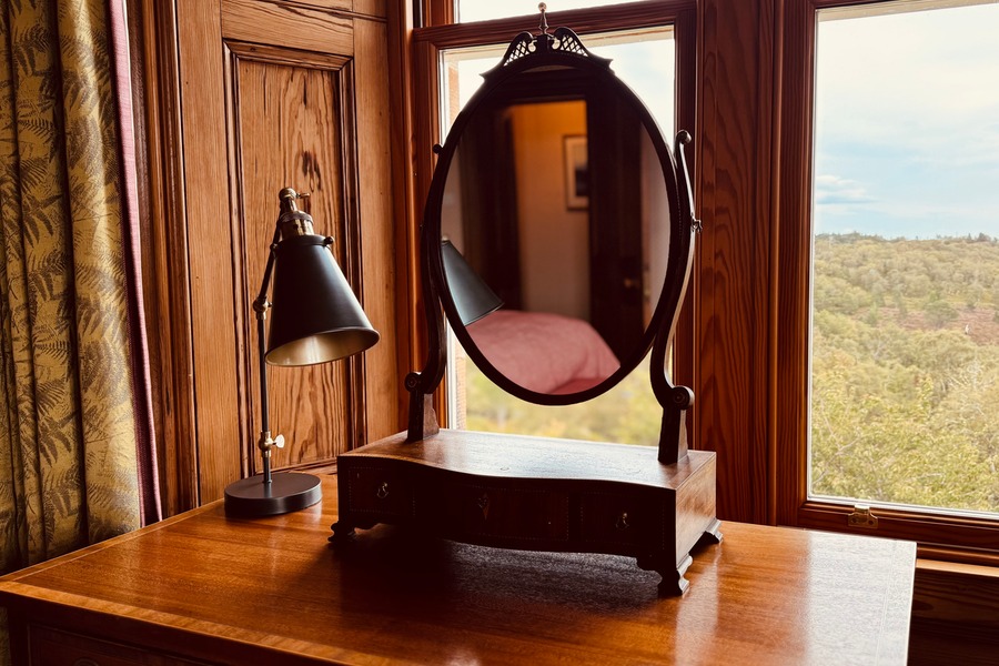 Willow Suite- A beutiful suite with large sitting area, large bow windows, high celling, and antique furniture that can take you back to Victorian era. The en-suite bathroom has both a bath and a shower. Stunning south-east facing views.